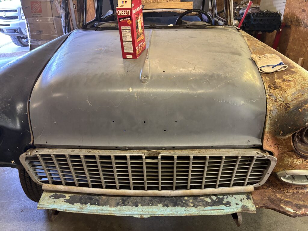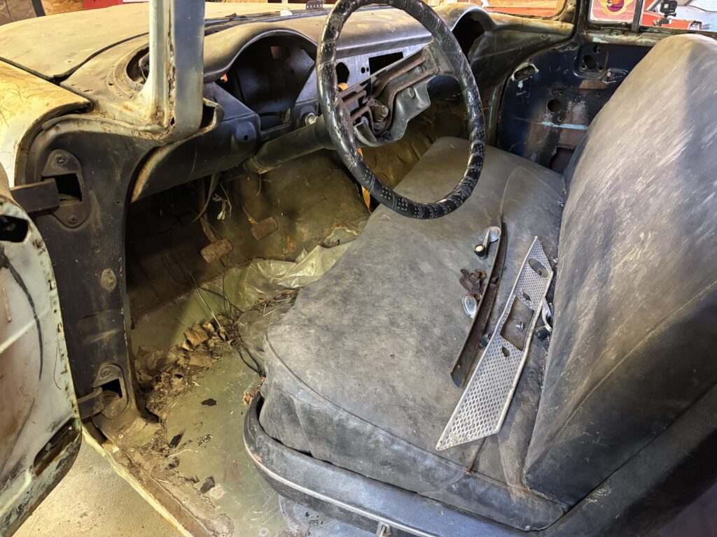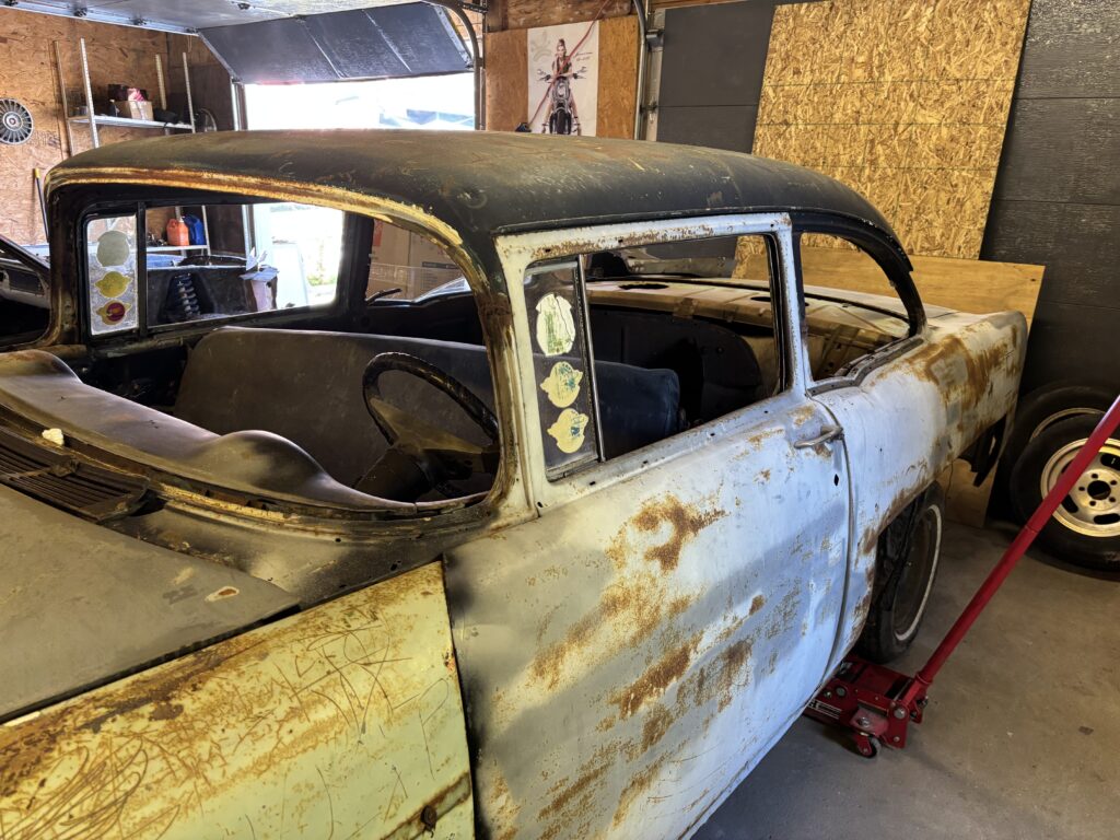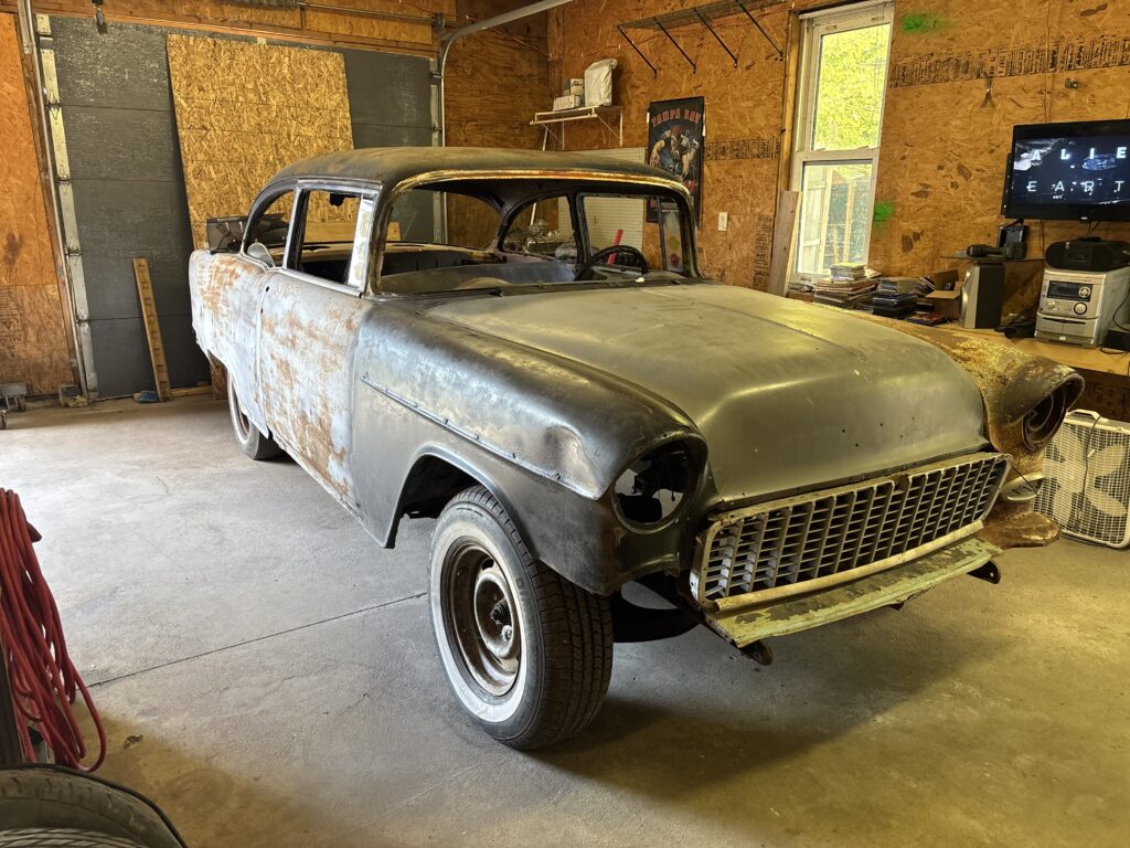 About the 55, This car is a solid car. Frame is very solid! Clean Indiana title in hand. Includes all glass except the left rear quarter glass. No front seat but has rear seat which is the hardest to find. No motor No transmission. Has all the chrome moldings except for the hood ornament, has replacement drivers side full rear quarter panel removed from a 55 donor!, has original wire harness currently out of the car, hood, front grill, lower front parts, fenders, inner front fenders, bumpers. For sale at $6500 or trade for 65-73 mustang or mustangs of equal value. Trades come to me but exchange photos through email or messenger. Below are some better photos. 1st photo Below is of it when it arrived.